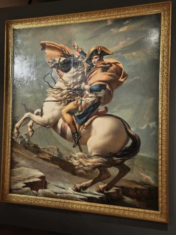 David va devenir le peintre de l’empereur, au prix de quelques accommodements. En 1800, il peint Bonaparte passant les Alpes sur un magnifique cheval blanc cabré qui a pris la place d’une humble mule. Pour le Sacre de Napoléon (1804), il installe la mère de l’empereur dans la loge centrale alors qu’elle était absente.
