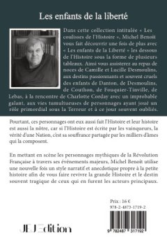 Les Enfants de la Liberté vous dévoileront ce que devinrent les enfants des grands personnages de la Révolution Française, Vous revivrez également les noces de Camille et Lucile Desmoulins et les amours interdits et suicidaires des grands acteurs de cette époque et bien d’autres histoires, où corruption, vengeance et trahison se mêleront aux grandes affaires du passé.
